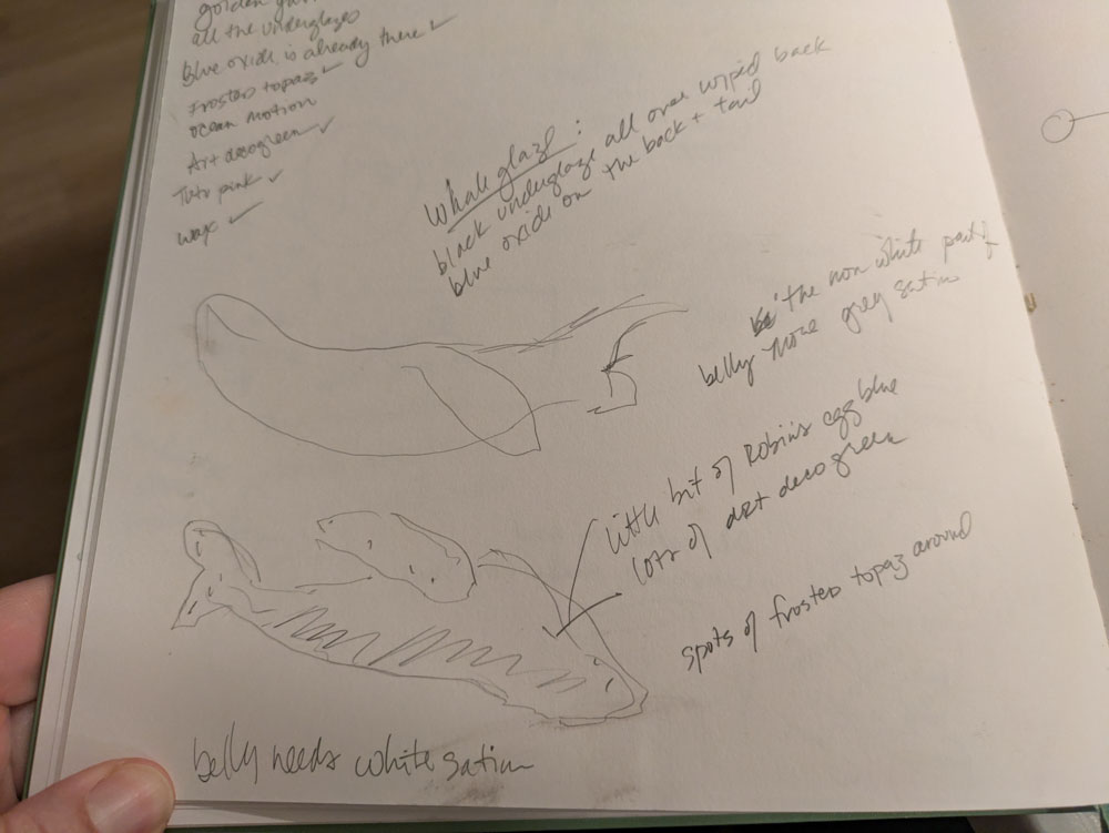 Okay, okay, okay - this is glazed and ready for the final fire. Looks so ugly with glaze not fired! Also…unfired glaze ugly paint => melts to glass is wild.